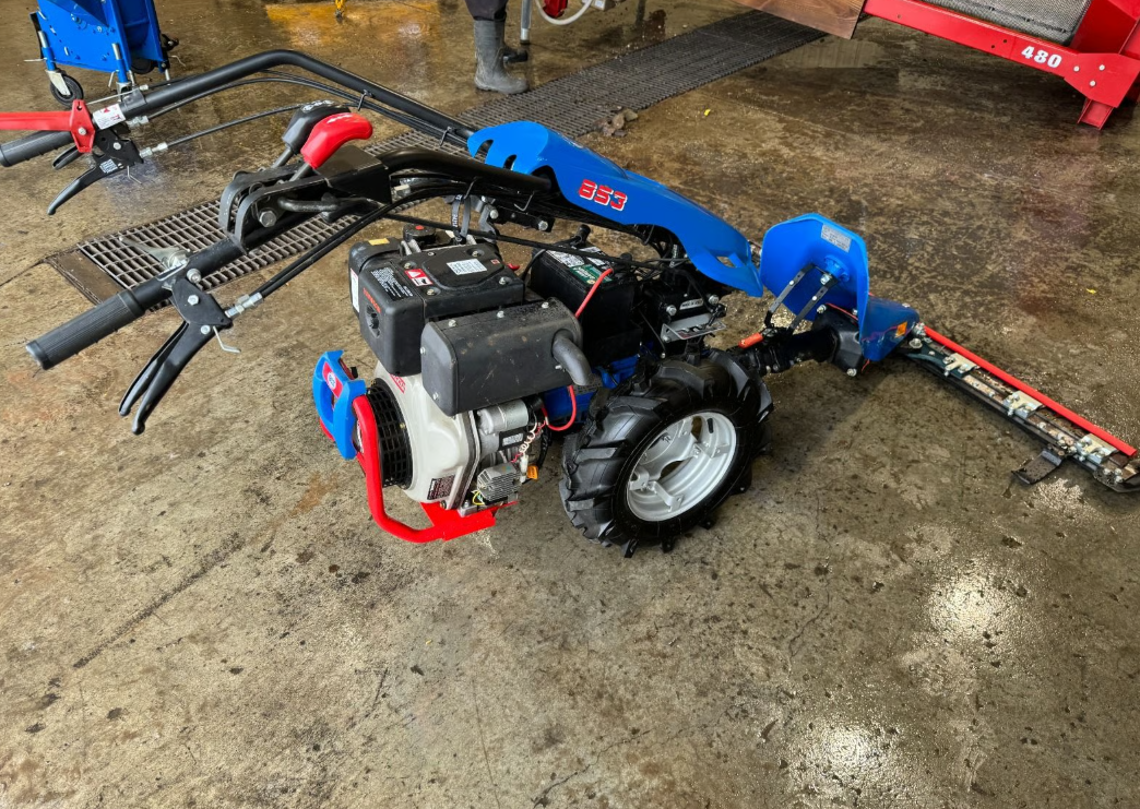 BCS 853 tractor with 52″ sickle bar mower, This one has a Yanmar diesel engine with electric start and a 4 speed transmission. looks near new, other attachments available.
