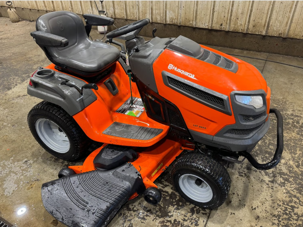 | Provided Description | Husqvarna LGT2654 lawn tractor with 54″ deck, 26 HP Kohler engine, and hydro transmission. Shows 761 hours, but looks like the meter may run if the key is left on. |