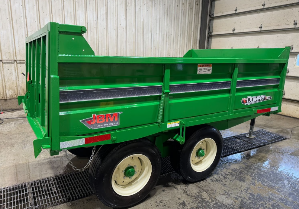Provided Description John B.M. Manufacturing T800 Mighty Dumper 8-ton hydraulic dump wagon. 10′ long, 6′ wide, and 2′ high sides that are removable. Designed for farm use, not a titled trailer. Currently in use at the Wenger farm.