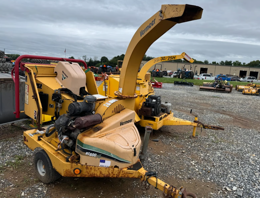 Vermeer BC600 XL portable wood chipper with Kohler Command Pro 725 twin cylinder gas engine and hydraulic feed roll. |